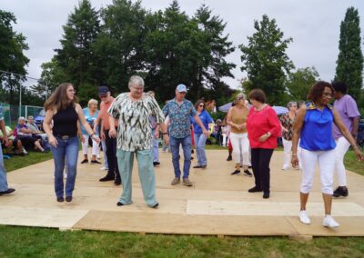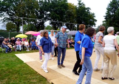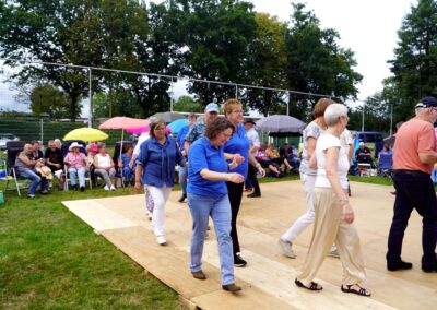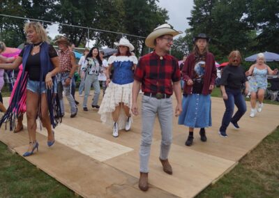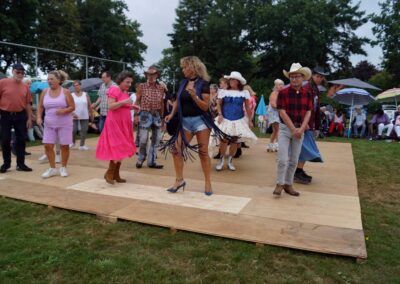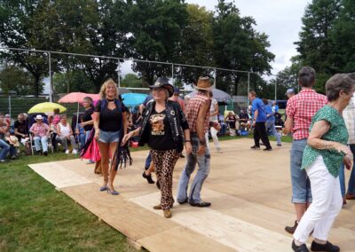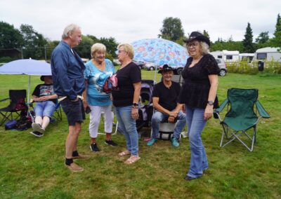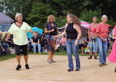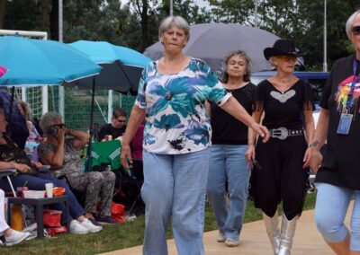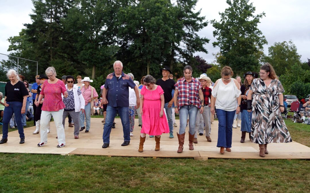 Zondag morgen vertrekken we op tijd naar Voorthuizen om op Camping de Meidoorn te helpen met de Party tent op te zetten en dan komen we ineens Tiny en Gerrie tegen zo super leuk, die staan als suprise met de caravan op de camping als suprise dat vonden we zo super leuk,Samen met Carla & Hennie zetten we de partytent op en zetten ook me laptop neer , en de vloer word door Joop en Fred en Gerrit en Kees en Tiny neer gelegd, en terwijl wij alles opbouwen komen de eerste gasten er al aan met hun stoelen en parasol en al snel komen er meer om de vloer heen, ik ga even met Carla mee omdat ze nog moest omkleden en help der met der corset ,daarna lopen we terug en is het nog voller om de vloer heen, ik krijg al veel verzoekjes binnen en net voordat we beginnen komt ook Dj Yvonne eraan en haar laptop heeft wat kuren, maar net voordat we gaan draaien doet ook haar laptop mee met muziek draaien pfff gelukkig, ook Jan Wobbes komt eraan dus de club is weer compleet en we gaan er weer voor, het weer is mooi voor de dansers 20 a 21 graden en af en toe een miezer buitje ,maar later dikke wolken die mooi over gaan, Fred en Gerrit verkopen de entree kaarten aan de line dancers ,iedereen vind ze plekje naast de dans vloer en ook op de dansvloer die de hele dag goed gevuld blijft, we draaien elk 30minute om en om, en Jan Wobbes geeft een Workshop met de dans Let’s Do Da Dance en ook dan staat de vloer vol, wat een energie hebben veel dansers en wat is het toch leuk om voor al de Linedancers die de reis gemaakt hebben te mogen draaien, regio Utrecht en Regio Amsterdam en Drenthe en Brabant overal komen ze vandaan en ook veel nieuwe mensen erbij ,er worden veel filmpjes gemaakt en foto’s en die zien we later ook op Facebook voorbij komen,het is dit jaar weer een super geslaagd Line dance Feest op de Meidoorn ,we bedanken alle bezoekers en bestuur en zij bedanken ons en van het bestuur krijgen we een leuk presentje ,tja voor je het weet is de middag weer voorbij en wordt de vloer en tent weer afgebroken en gaan we wat drinken en eten in de Meidoorn en dan weer op huis aan het was een top dag weer ..dank jullie wel allemaal xxx en tot volgend jaar .