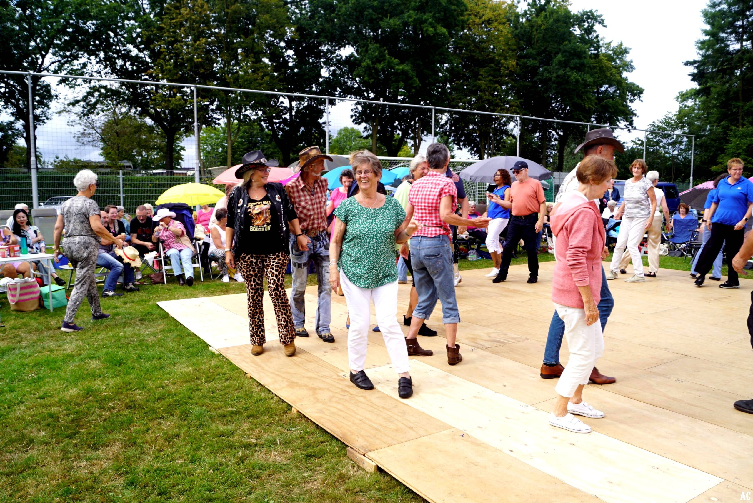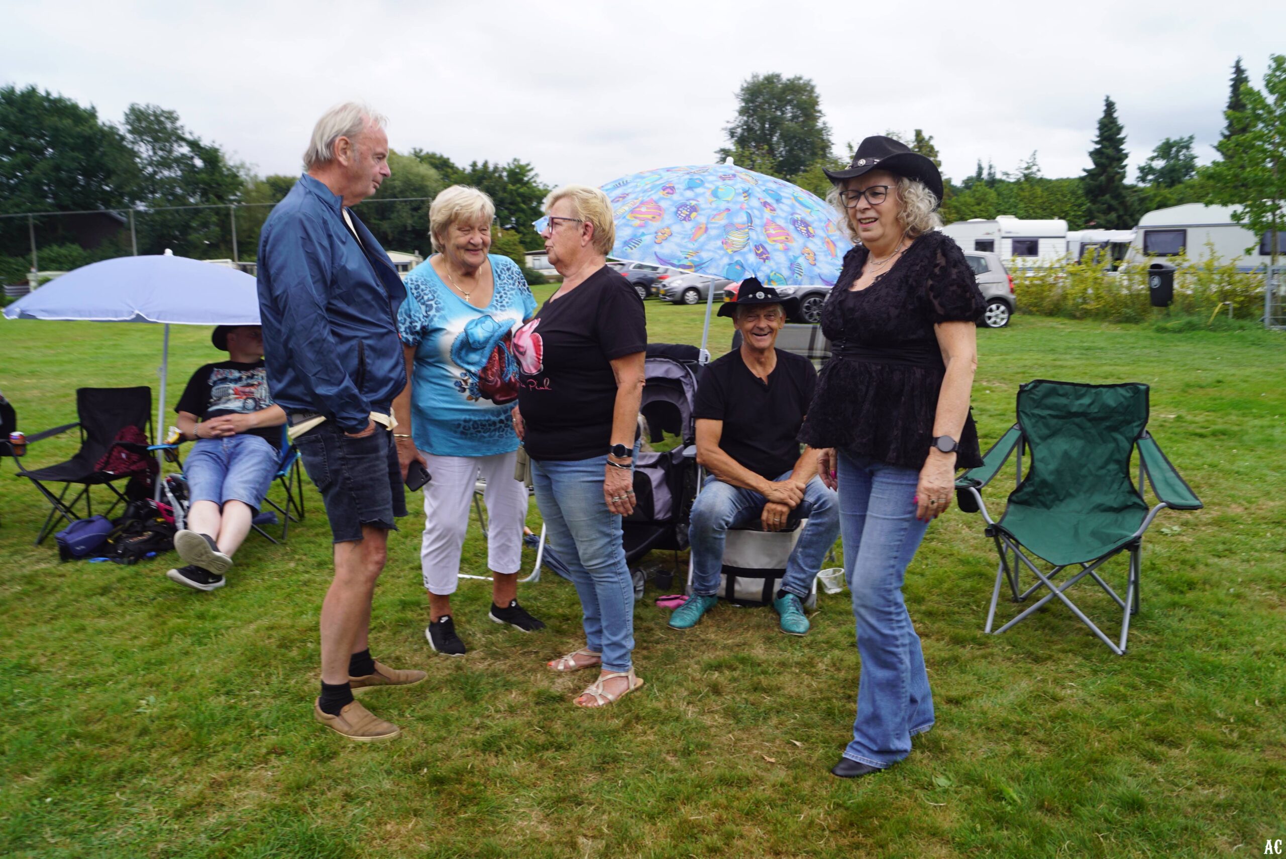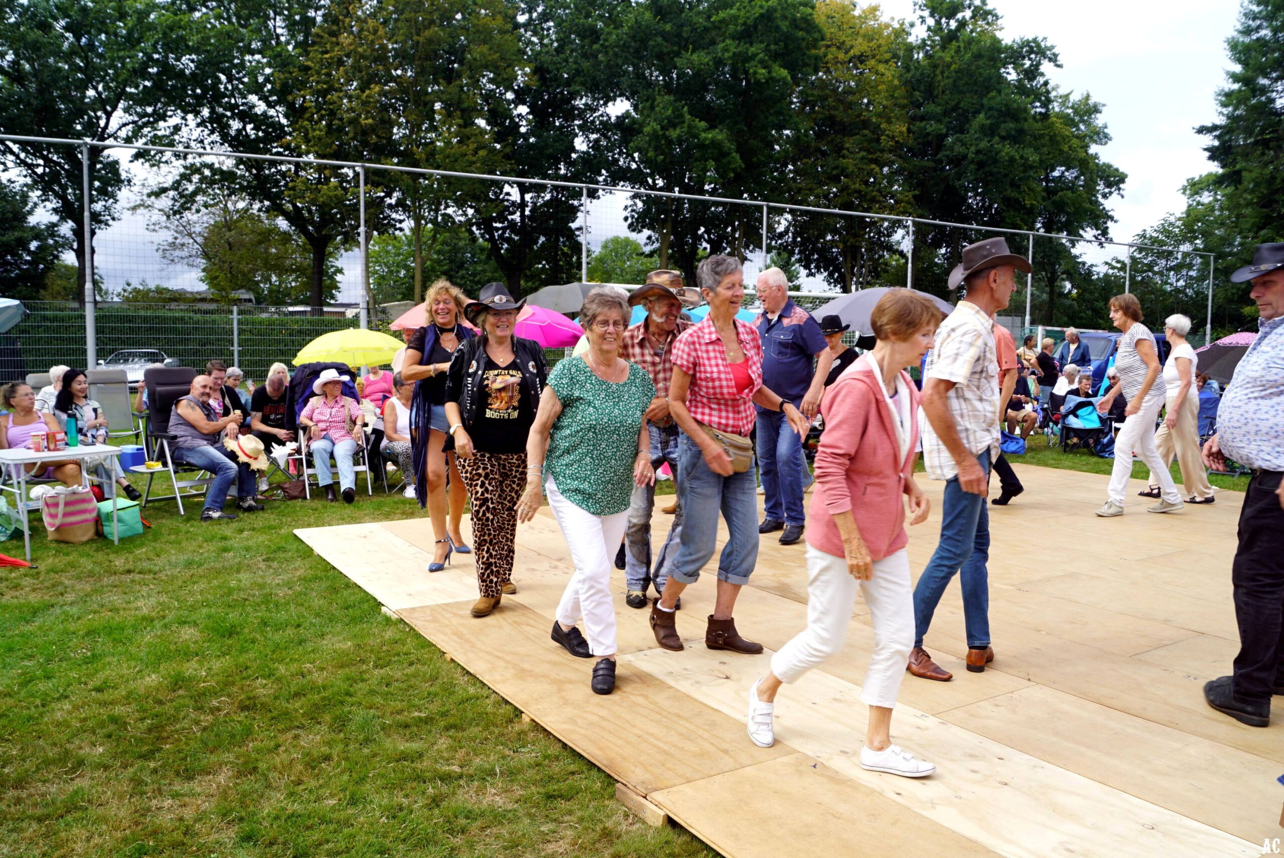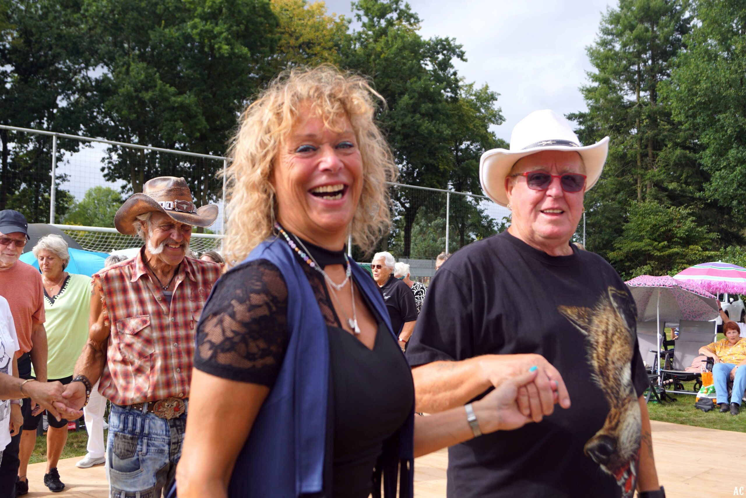 Zondag morgen vertrekken we op tijd naar Voorthuizen om op Camping de Meidoorn te helpen met de Party tent op te zetten en dan komen we ineens Tiny en Gerrie tegen zo super leuk, die staan als suprise met de caravan op de camping als suprise dat vonden we zo super leuk,Samen met Carla & Hennie zetten we de partytent op en zetten ook me laptop neer , en de vloer word door Joop en Fred en Gerrit en Kees en Tiny neer gelegd, en terwijl wij alles opbouwen komen de eerste gasten er al aan met hun stoelen en parasol en al snel komen er meer om de vloer heen, ik ga even met Carla mee omdat ze nog moest omkleden en help der met der corset ,daarna lopen we terug en is het nog voller om de vloer heen, ik krijg al veel verzoekjes binnen en net voordat we beginnen komt ook Dj Yvonne eraan en haar laptop heeft wat kuren, maar net voordat we gaan draaien doet ook haar laptop mee met muziek draaien pfff gelukkig, ook Jan Wobbes komt eraan dus de club is weer compleet en we gaan er weer voor, het weer is mooi voor de dansers 20 a 21 graden en af en toe een miezer buitje ,maar later dikke wolken die mooi over gaan, Fred en Gerrit verkopen de entree kaarten aan de line dancers ,iedereen vind ze plekje naast de dans vloer en ook op de dansvloer die de hele dag goed gevuld blijft, we draaien elk 30minute om en om, en Jan Wobbes geeft een Workshop met de dans Let’s Do Da Dance en ook dan staat de vloer vol, wat een energie hebben veel dansers en wat is het toch leuk om voor al de Linedancers die de reis gemaakt hebben te mogen draaien, regio Utrecht en Regio Amsterdam en Drenthe en Brabant overal komen ze vandaan en ook veel nieuwe mensen erbij ,er worden veel filmpjes gemaakt en foto’s en die zien we later ook op Facebook voorbij komen,het is dit jaar weer een super geslaagd Line dance Feest op de Meidoorn ,we bedanken alle bezoekers en bestuur en zij bedanken ons en van het bestuur krijgen we een leuk presentje ,tja voor je het weet is de middag weer voorbij en wordt de vloer en tent weer afgebroken en gaan we wat drinken en eten in de Meidoorn en dan weer op huis aan het was een top dag weer ..dank jullie wel allemaal xxx en tot volgend jaar .