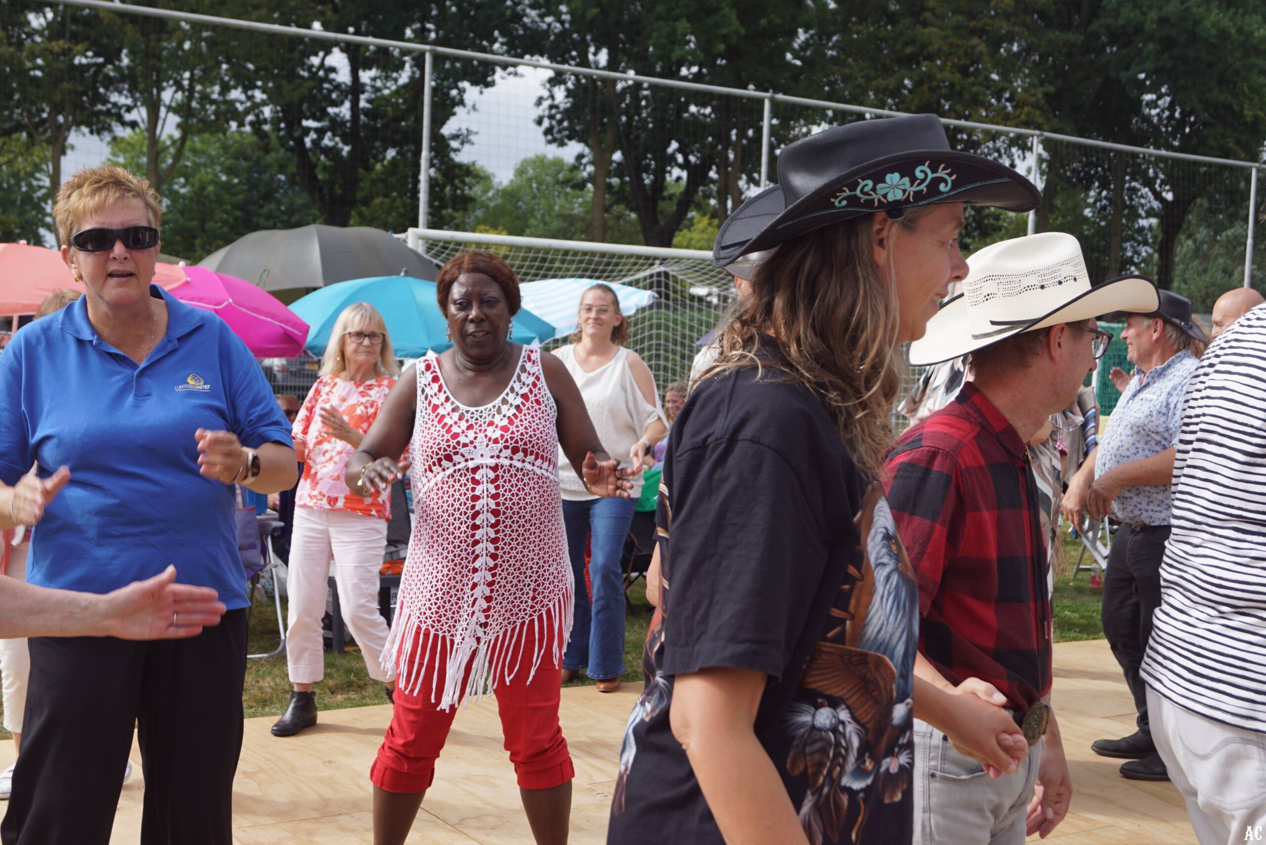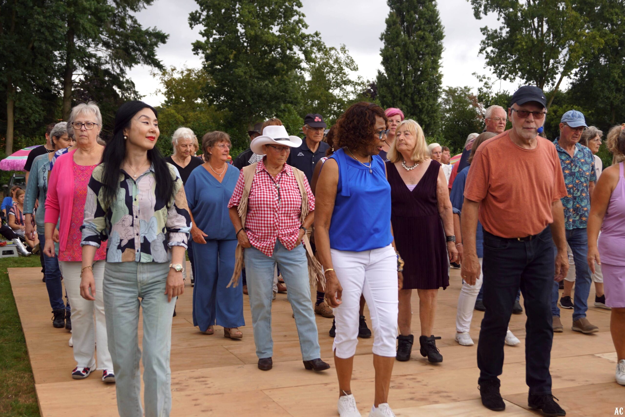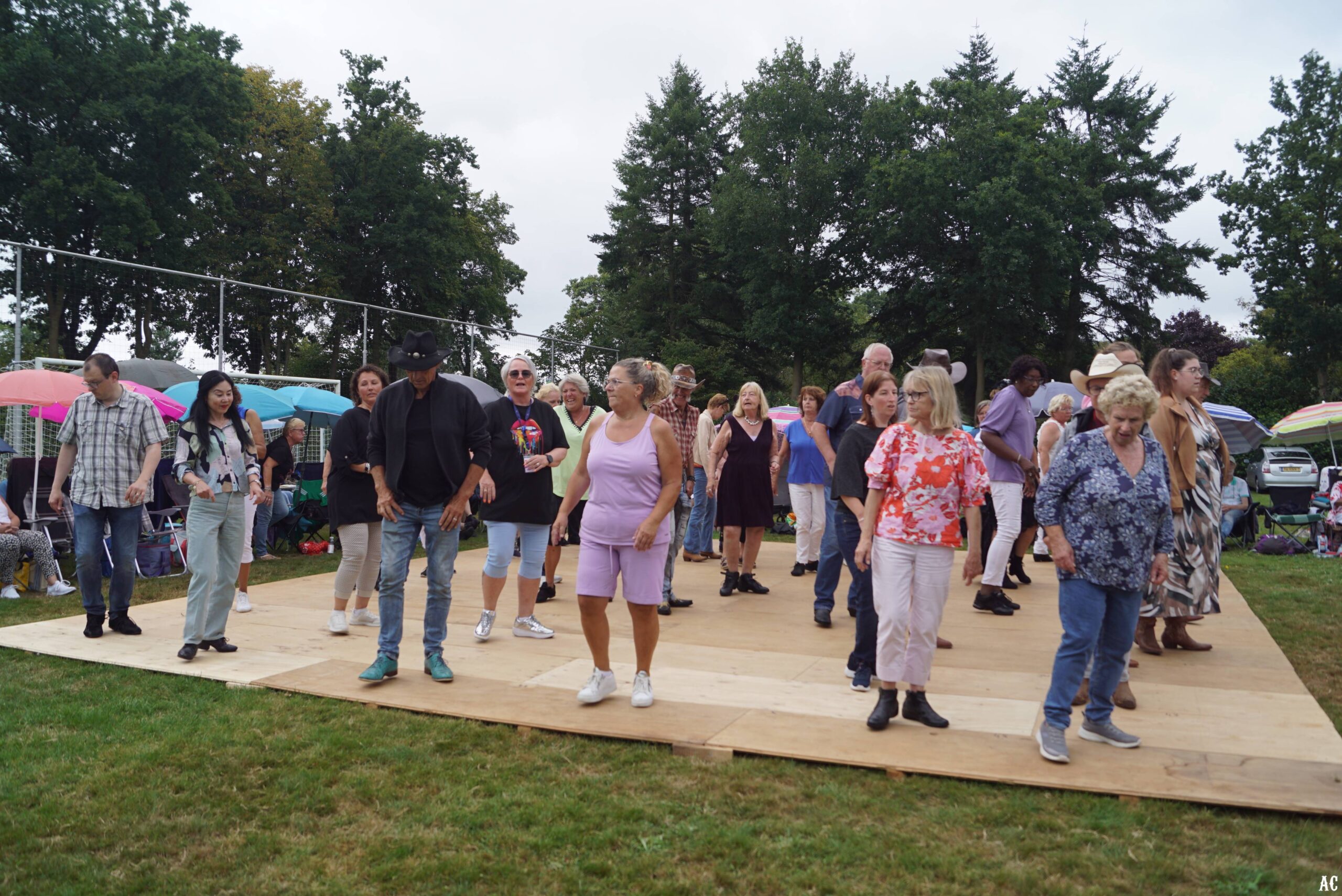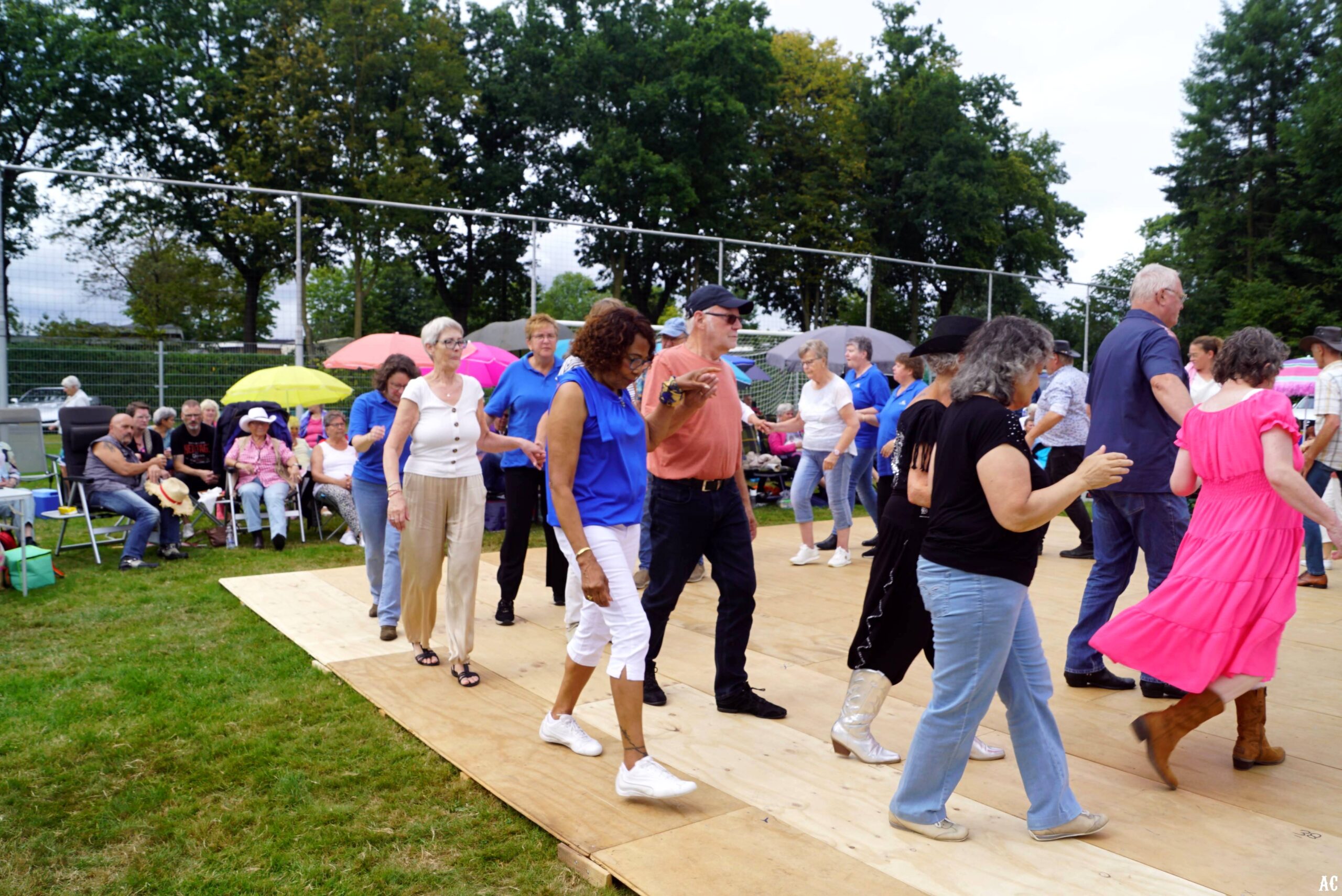 Zondag morgen vertrekken we op tijd naar Voorthuizen om op Camping de Meidoorn te helpen met de Party tent op te zetten en dan komen we ineens Tiny en Gerrie tegen zo super leuk, die staan als suprise met de caravan op de camping als suprise dat vonden we zo super leuk,Samen met Carla & Hennie zetten we de partytent op en zetten ook me laptop neer , en de vloer word door Joop en Fred en Gerrit en Kees en Tiny neer gelegd, en terwijl wij alles opbouwen komen de eerste gasten er al aan met hun stoelen en parasol en al snel komen er meer om de vloer heen, ik ga even met Carla mee omdat ze nog moest omkleden en help der met der corset ,daarna lopen we terug en is het nog voller om de vloer heen, ik krijg al veel verzoekjes binnen en net voordat we beginnen komt ook Dj Yvonne eraan en haar laptop heeft wat kuren, maar net voordat we gaan draaien doet ook haar laptop mee met muziek draaien pfff gelukkig, ook Jan Wobbes komt eraan dus de club is weer compleet en we gaan er weer voor, het weer is mooi voor de dansers 20 a 21 graden en af en toe een miezer buitje ,maar later dikke wolken die mooi over gaan, Fred en Gerrit verkopen de entree kaarten aan de line dancers ,iedereen vind ze plekje naast de dans vloer en ook op de dansvloer die de hele dag goed gevuld blijft, we draaien elk 30minute om en om, en Jan Wobbes geeft een Workshop met de dans Let’s Do Da Dance en ook dan staat de vloer vol, wat een energie hebben veel dansers en wat is het toch leuk om voor al de Linedancers die de reis gemaakt hebben te mogen draaien, regio Utrecht en Regio Amsterdam en Drenthe en Brabant overal komen ze vandaan en ook veel nieuwe mensen erbij ,er worden veel filmpjes gemaakt en foto’s en die zien we later ook op Facebook voorbij komen,het is dit jaar weer een super geslaagd Line dance Feest op de Meidoorn ,we bedanken alle bezoekers en bestuur en zij bedanken ons en van het bestuur krijgen we een leuk presentje ,tja voor je het weet is de middag weer voorbij en wordt de vloer en tent weer afgebroken en gaan we wat drinken en eten in de Meidoorn en dan weer op huis aan het was een top dag weer ..dank jullie wel allemaal xxx en tot volgend jaar .